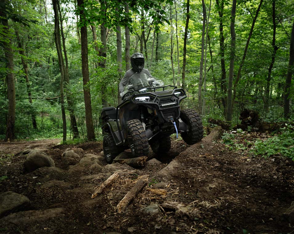 - Puerto de Carga de 12V, Puerto de Carga Lenta en Manillar, Precableado para Calentadores de Manos y Pulgares, Winch de 3,500 lb con Cuerda de Acero, Defensa Delantera Trail, Extensores de Parilla Delantero/Trasero, Plásticos Pintados, Resortes Pintados, Protectores de Brazo A de Suspensión Delantero